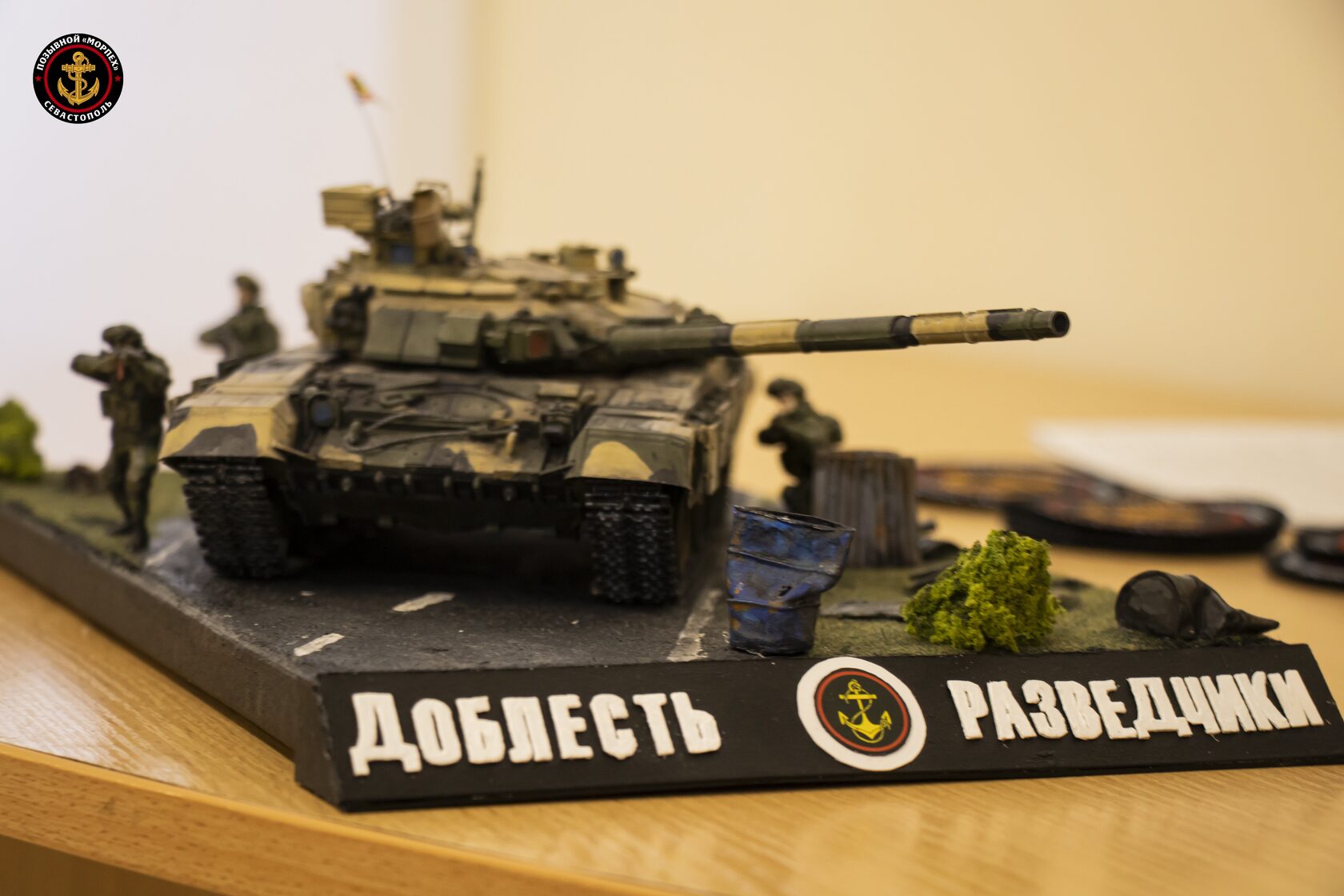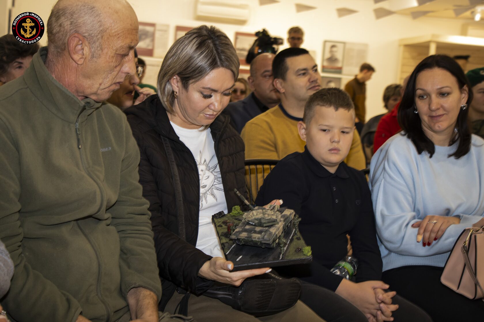 Ребята подготовили творческие номера в честь Героев Аскара Конарбаева и Константина Горбунова. Супруге Константина была на память передана ручная работа - поделка танка морской пехоты.